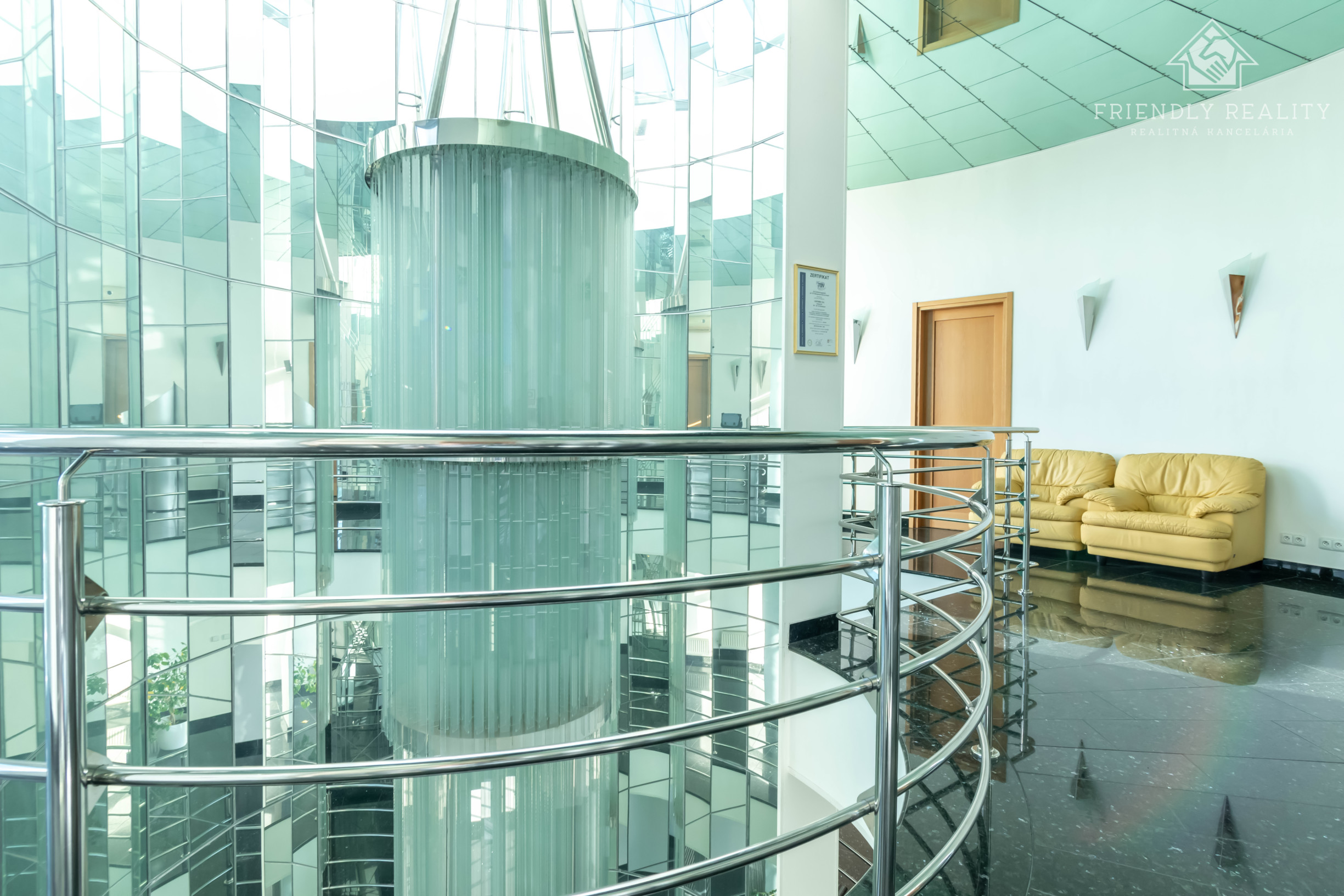 Tieto prémiové kancelárie sú priestranné, majú k dispozícií využiť vlastnú recepciu, každá kancelária má zvlašť sociálne zariadenie,klimatizáciu a v neposlednom rade príjemné posedenie s výhľadom do átria. K dispozíciií je možnosť prenajať parkovacie miesta, ale zároveň možnosť využiť krátkodobé parkovanie pre klientov alebo hostí(FREE) pred budovou.