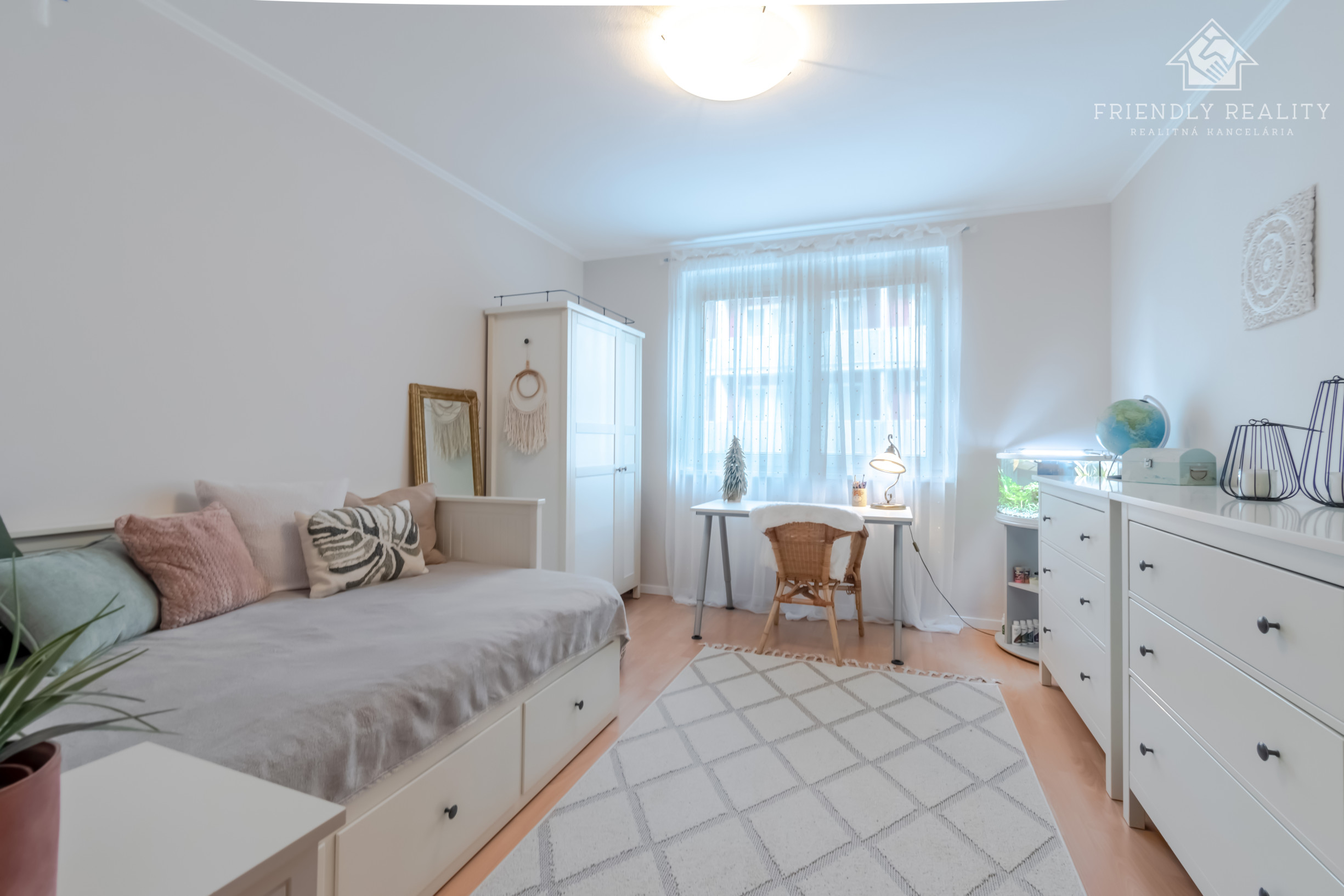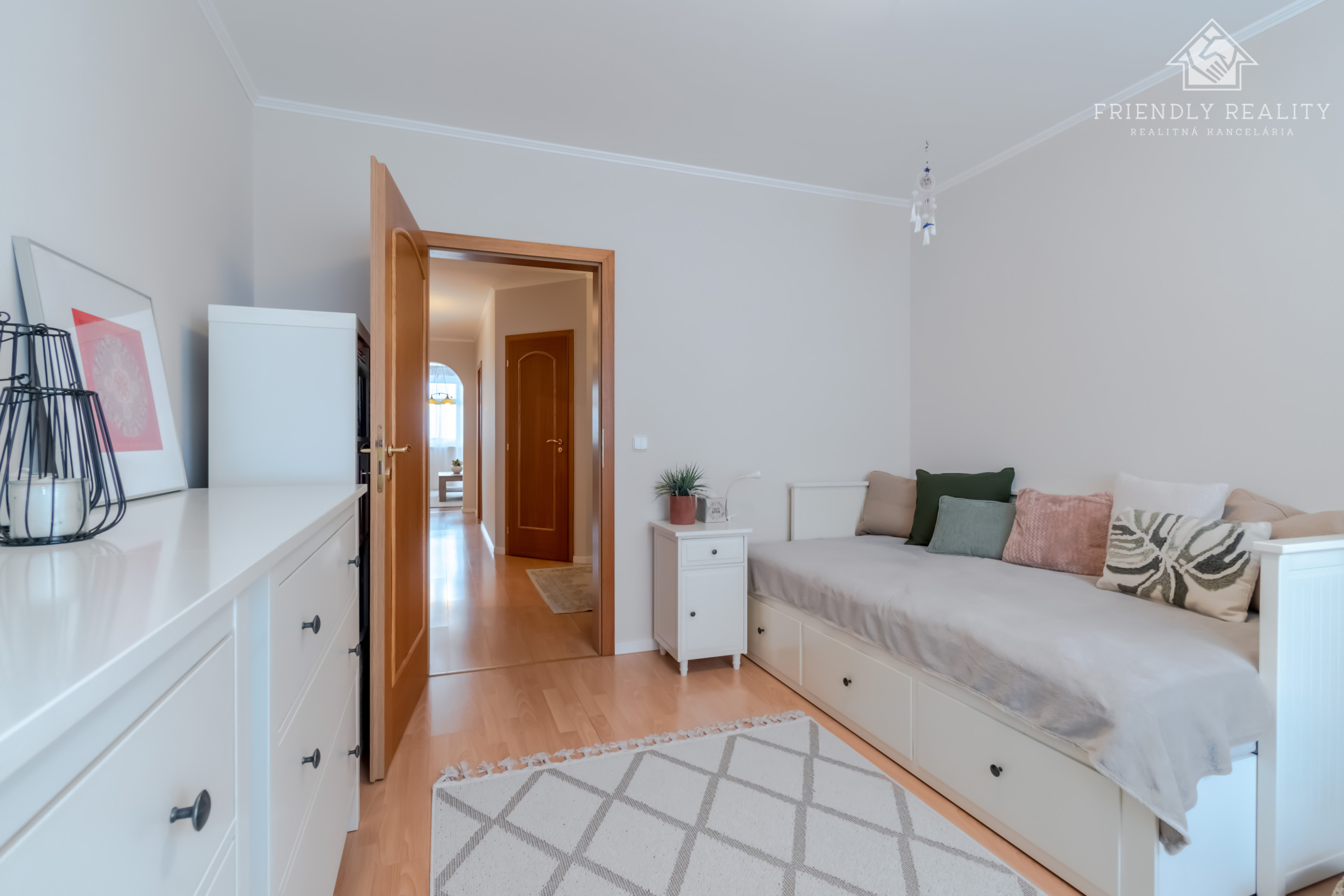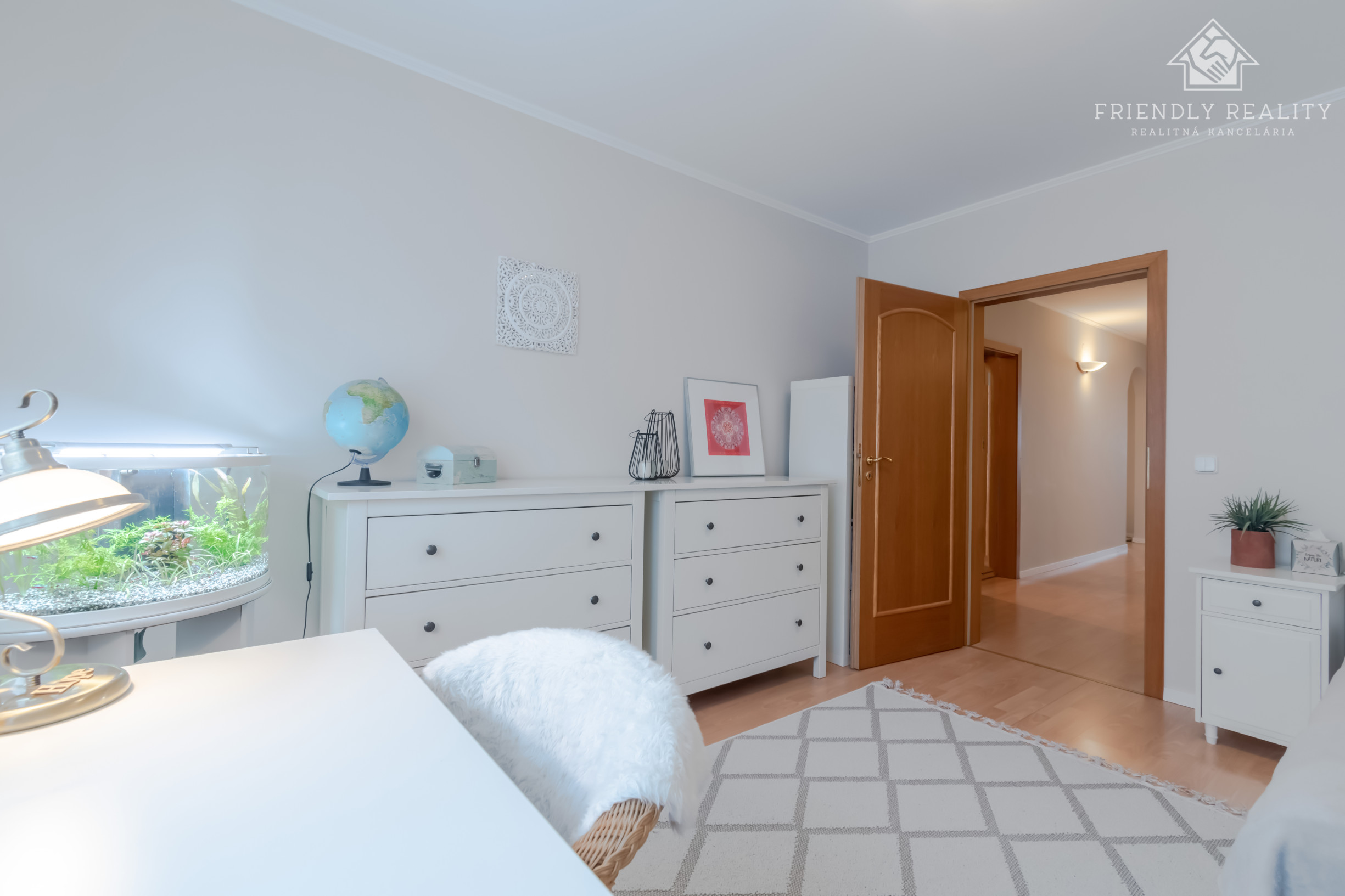 Nočná časť bytu – spálňa(16,8m²) a detská izba(13,9m²) orientované na severovýchod – ponúka pokojné ranné svetlo a ideálne podmienky na oddych.