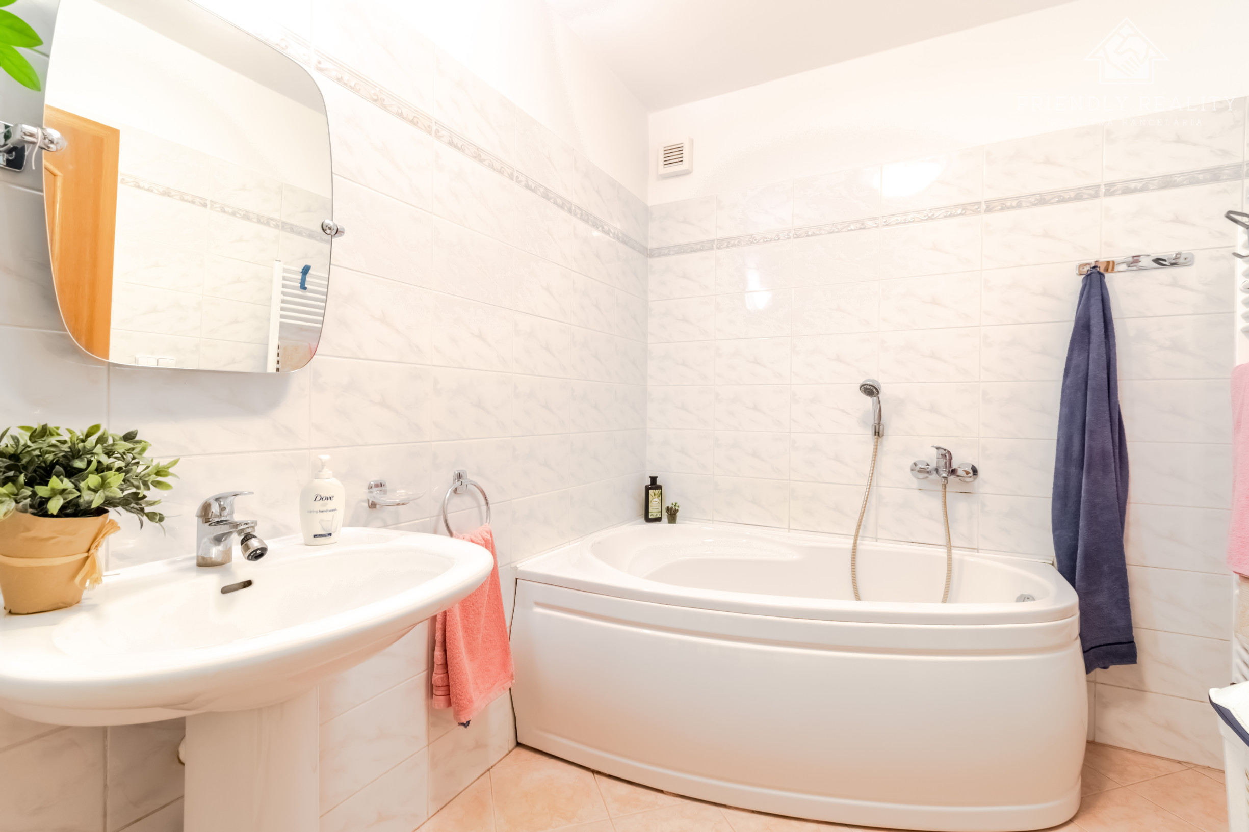 Oddelná kúpelňa s rohovou vaňou(6m²), s radiátorom a oddelné WC.