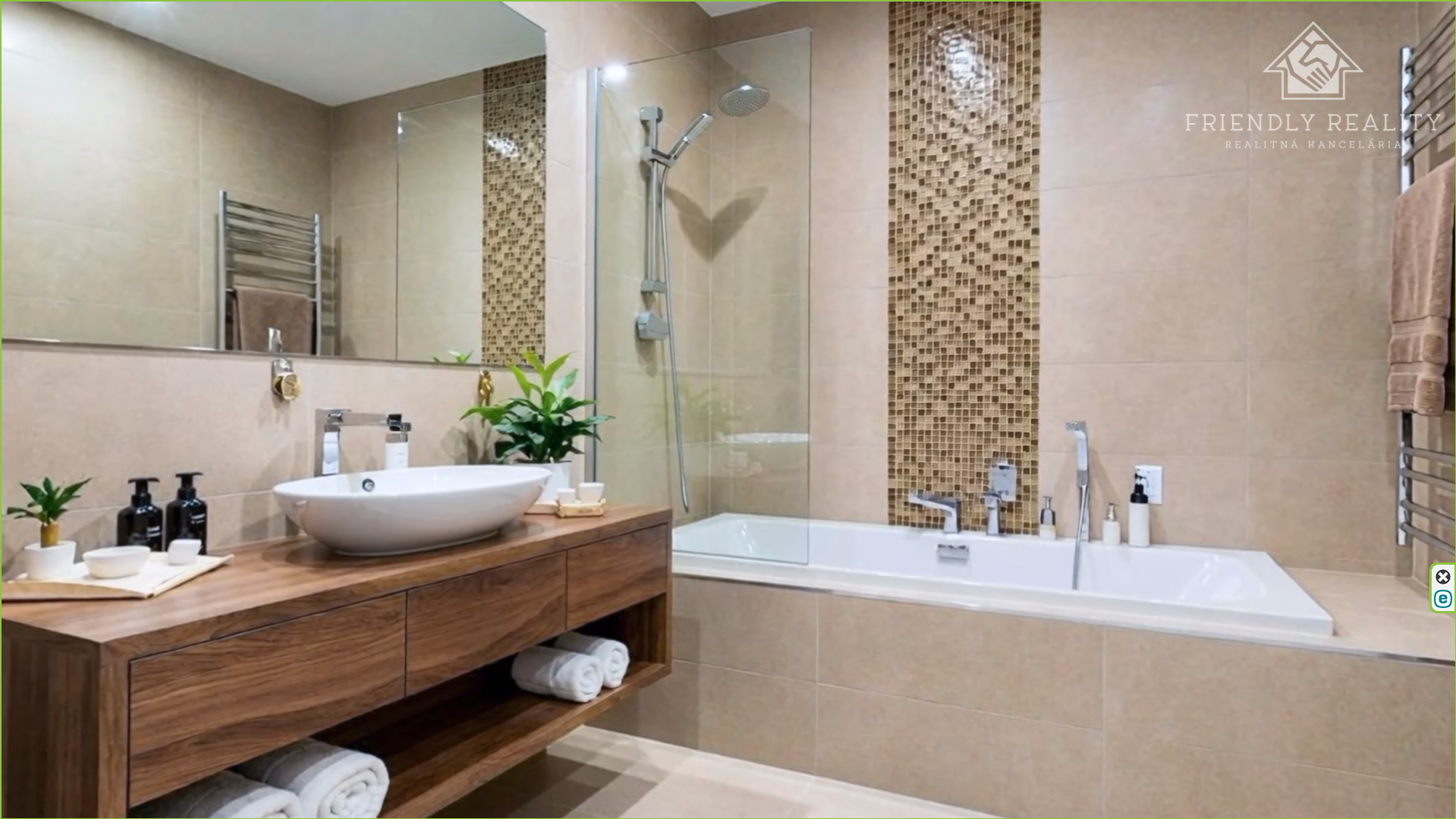 - Teplovodné podlahové kúrenie v celom byte ovladané termostatom